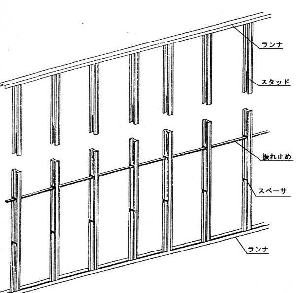 建築の内外装工事の分野で「不燃材料」として鋼製下地材は不可欠の材料です。 壁巾 125mmのタワーウォールは高さ10mまで可能